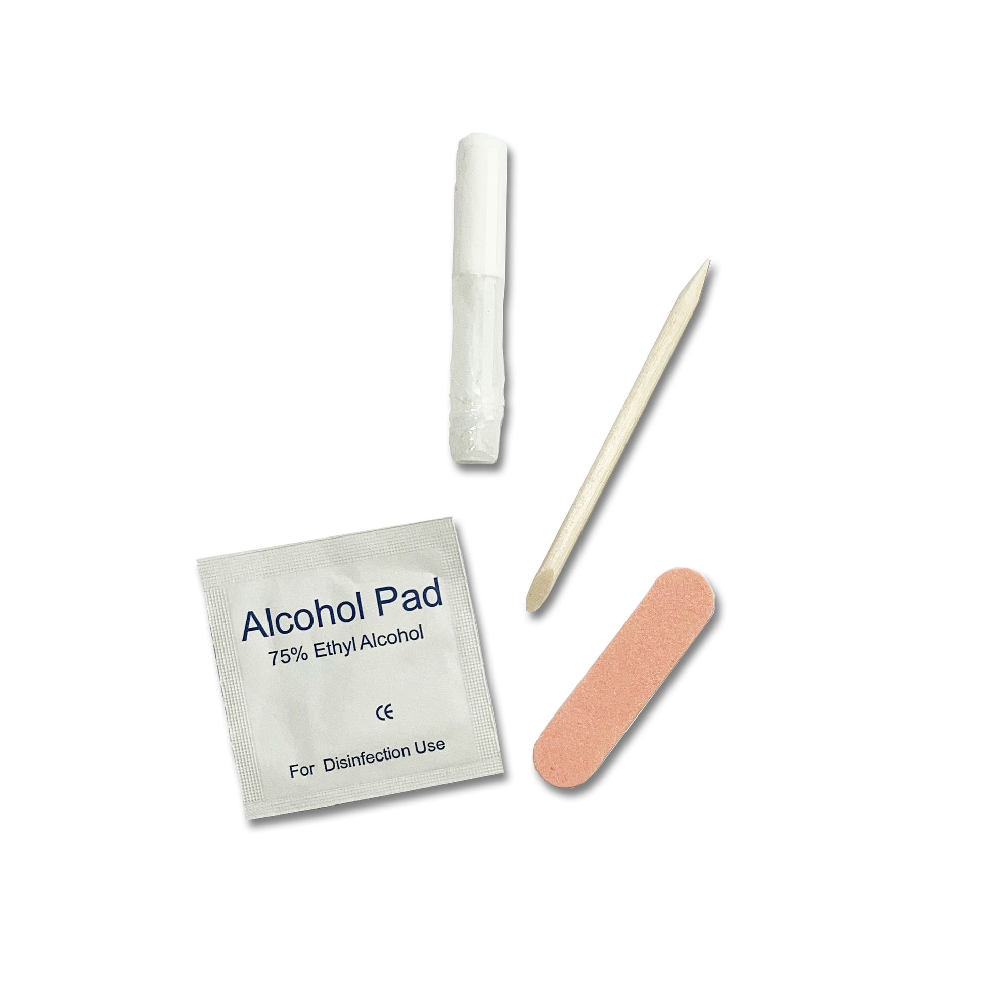 1. Push your cuticles back with the nail stick. File on top of your nails to remove the smooth surface. Remove dust and dirt with the alcohol pad.