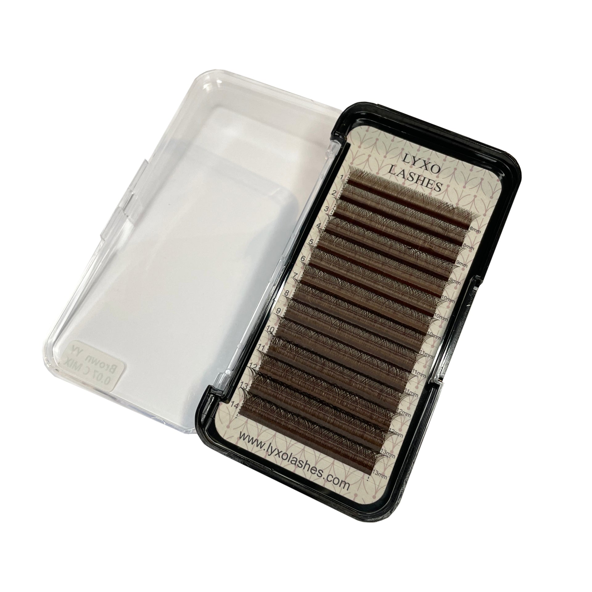Brune YY-lashes (vipper) er 2D faner i 0.07 mm tykkelse, hver fane består af 2 flat lashes sat sammen.