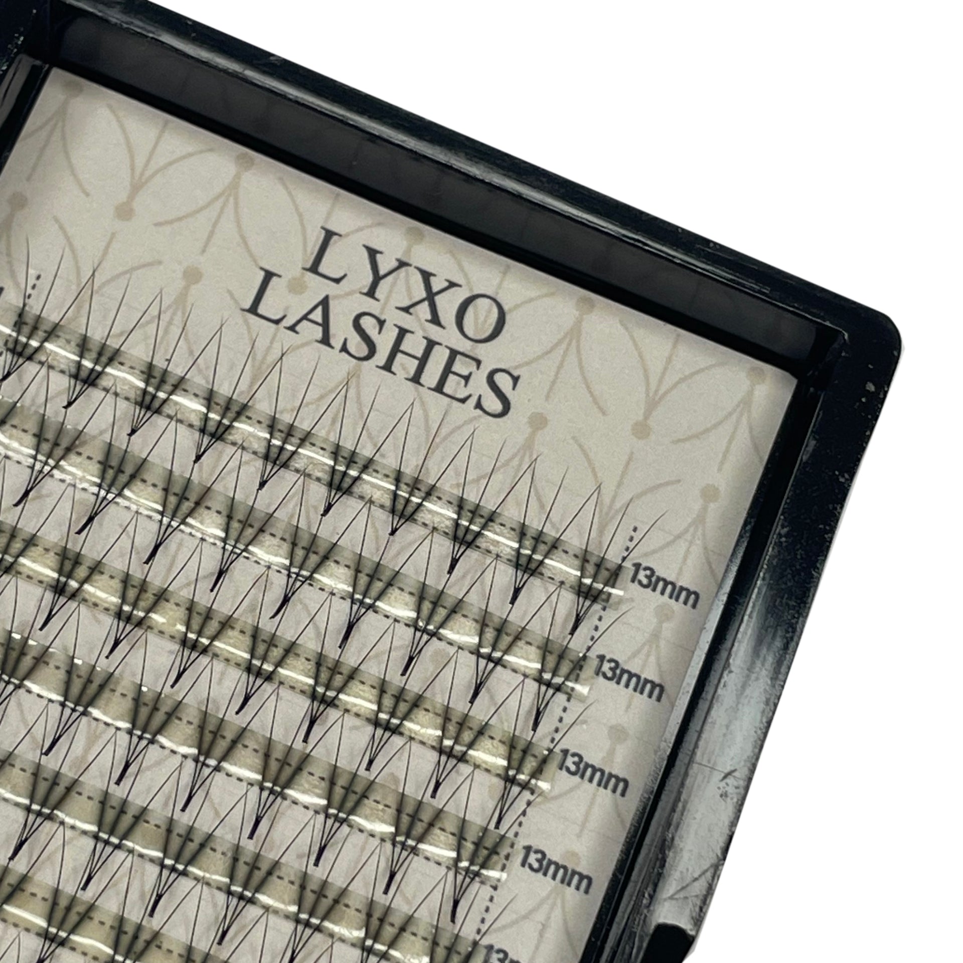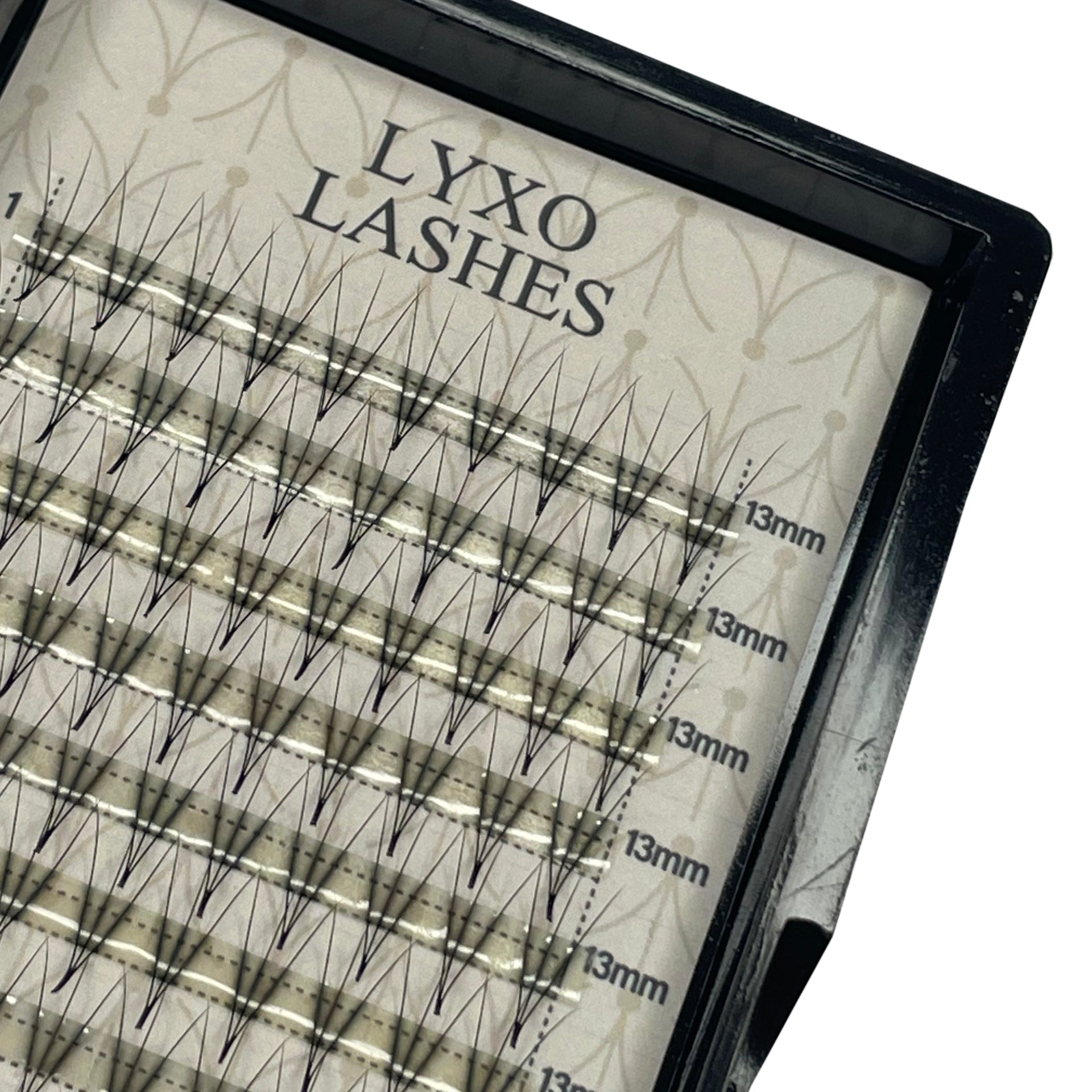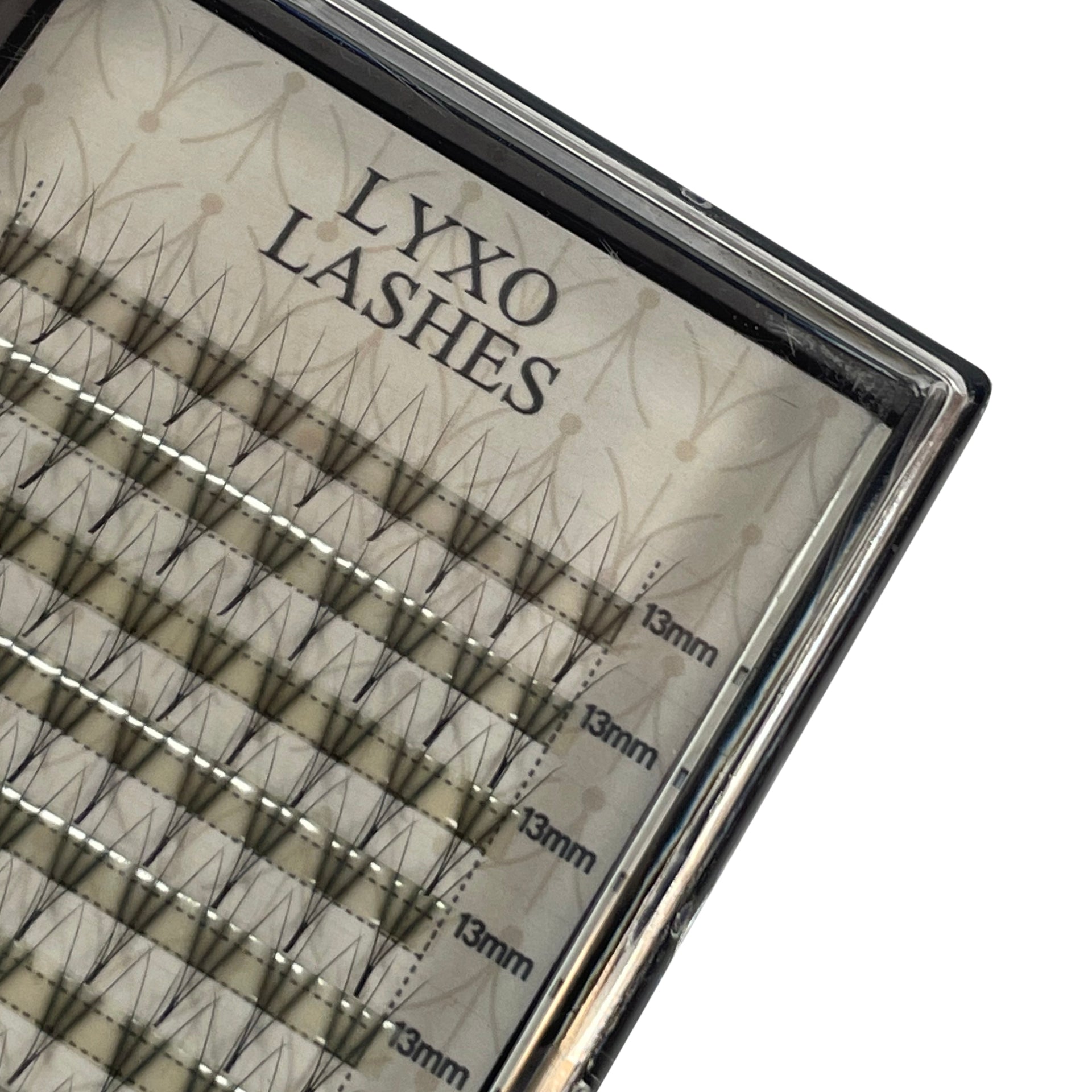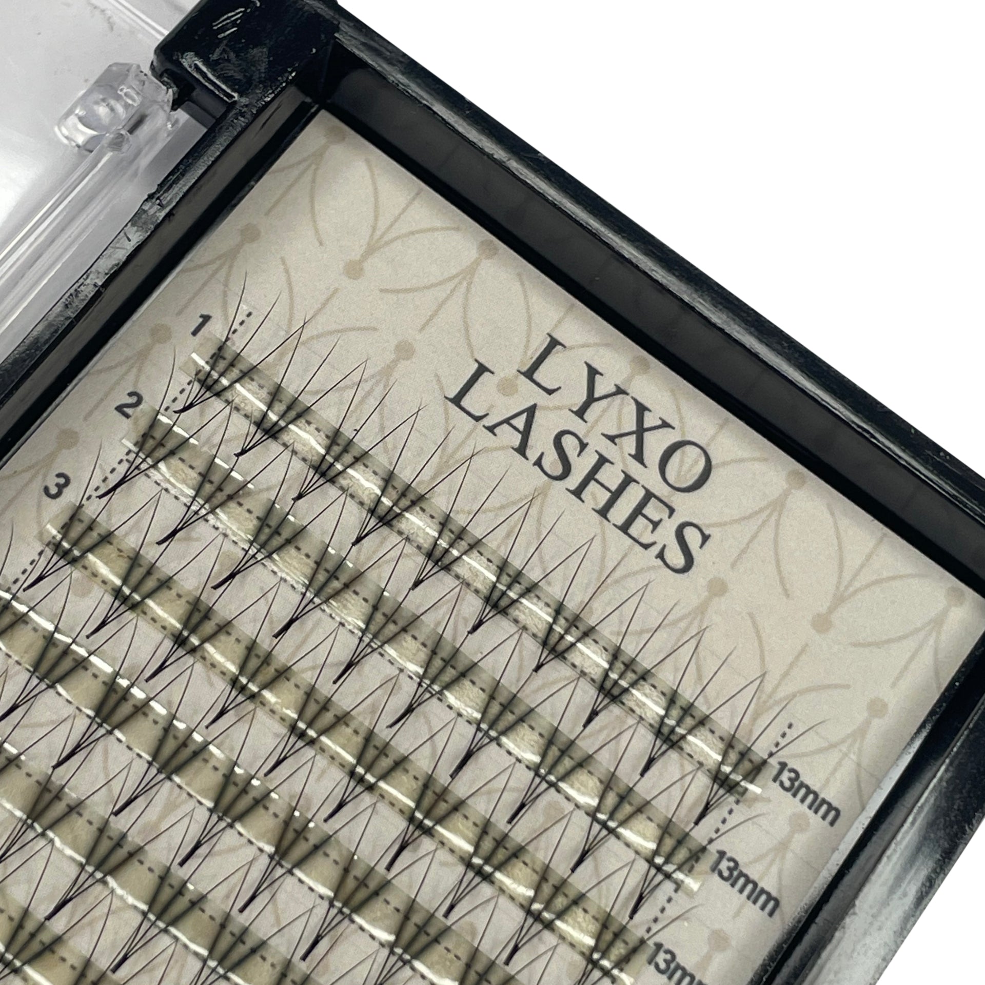 Vores deluxe pre-made volume faner er sammensat af enten 3 eller 6 lash extensions, samlet uden brug af lim. Fanerne er klar til brug og ideelle til både hybrid- og volume lash extensions, hvor du ønsker et smukt og ensartet resultat med tidsbesparelse.